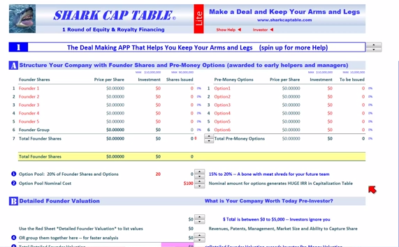 The SharkCap Table Overview highlights some of the major components that make up the SharkCap Table.